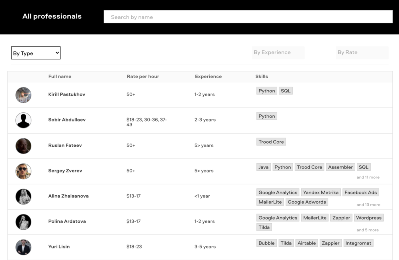 Получите бесплатный доступ к базе сертифицированных IT-специалистов, которые быстро выполнят задачи для вашего проекта. Без ожиданий в недели и месяцы.